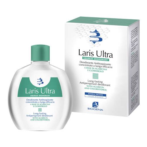LARIS ULTRADescrizione Deodorante sicuro, studiato e consigliato da dermatologi, per prevenire la sudorazione eccessiva e le sue conseguenze olfattive. LARIS ULTRA si fissa delicatamente sulla pelle svolgendo un’azione deodorante e antitraspirante di lunga durata (oltre 24 ore). Per la sua azione fisiologica, ben calibrata, non aggressiva può essere utilizzato tutti i giorni. Modalità d'uso Spruzzare o nel cavo ascellare comprimendo con un movimento rapido lo spe ciale flacone “squeezable” che lo contiene. Tenendo il flacone in posizione verticale effettuare 3-4 spruzzi per ascella. Un successivo breve massaggio con la punta delle ...